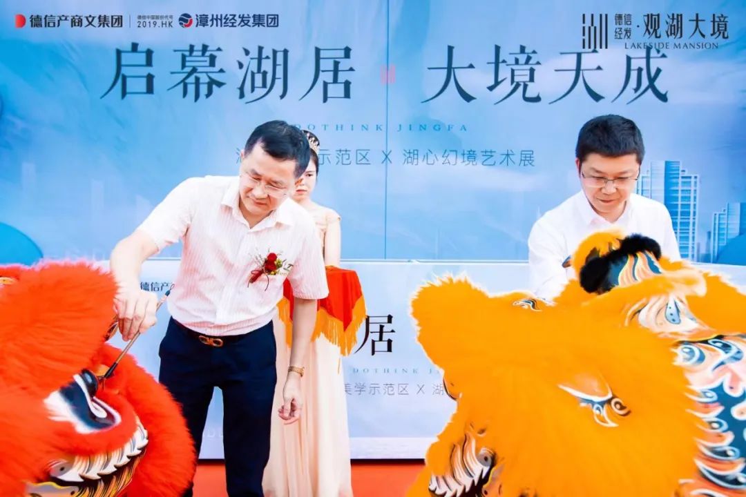舞獅表演結(jié)束后,在眾多賓客的見(jiàn)證下,各位領(lǐng)導(dǎo)一同上臺(tái),在啟動(dòng)臺(tái)前注入干冰,進(jìn)行開(kāi)放儀式,湖境美學(xué)示范區(qū)隨之盛啟,大廈門(mén)湖居新紀(jì)元自此煥新。