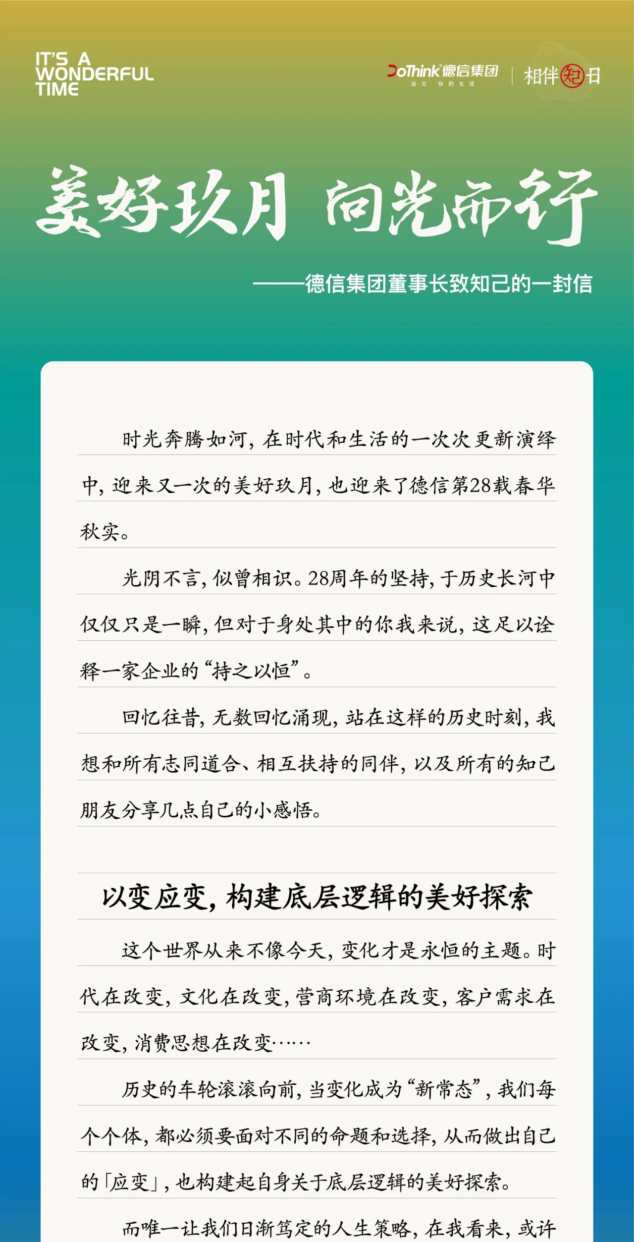 美好玖月,向光而行 | 28周年,9001cc金沙以诚为本集團董事長致知己的一封信