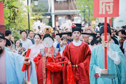 七夕佳節(jié),老街還舉行了盛大的宋制婚禮表演,和意中人蟾邊月下許愿,相思河畔共放河燈,傳統(tǒng)文化氛圍中傳遞出“愛和美”的祝福。豐富多彩的活動,讓游客在夜游活動中充分感受千年古埠的繁華,領(lǐng)略多姿的宋韻文化。國風(fēng)文化節(jié)作為唐域商業(yè)打造的老街獨屬IP,已舉辦至第二屆。之后每年都會定期開展,成為一年一度的盛事。