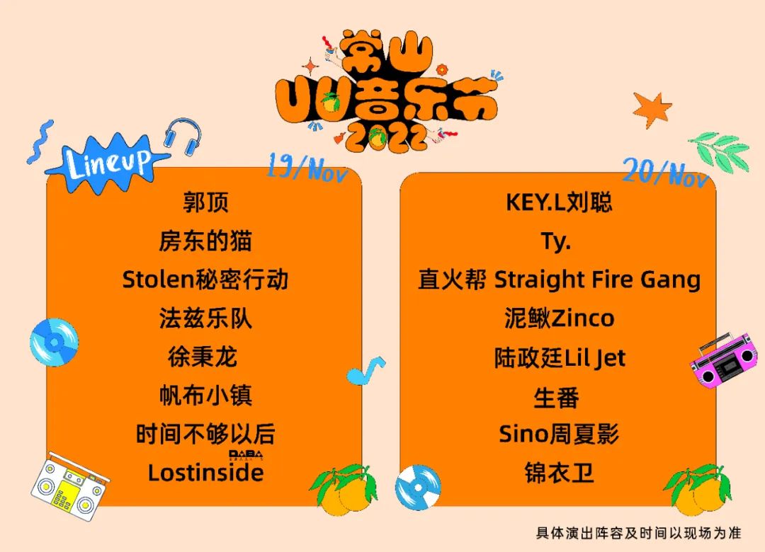 夏天雖然已經(jīng)過去,但屬于我們的夏天一直都在。11月19日-11月20日,2022常山UU音樂節(jié),郭頂、KEL.Y劉聰、房東的貓、Ty.等16組藝人,和我們一起在常山徐村村大草坪,等你赴約。