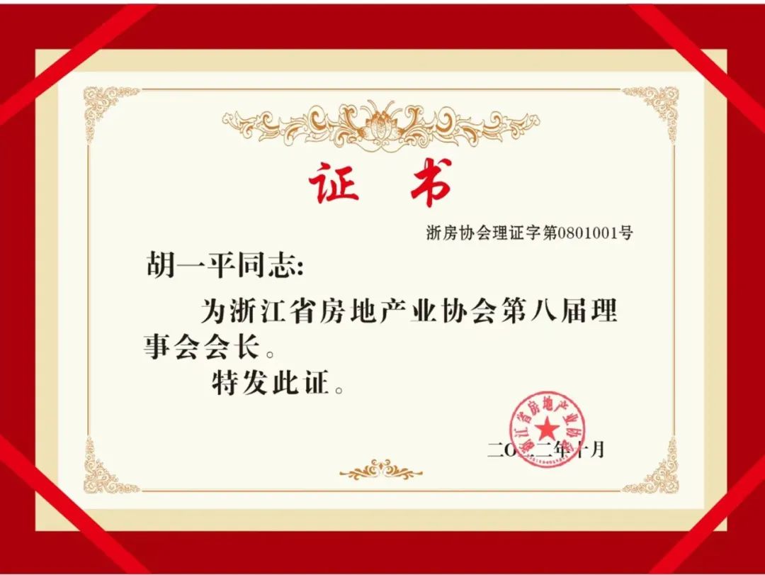 官宣:9001cc金沙以诚为本控股集團(tuán)董事長胡一平連任浙江省房地產(chǎn)業(yè)協(xié)會會長