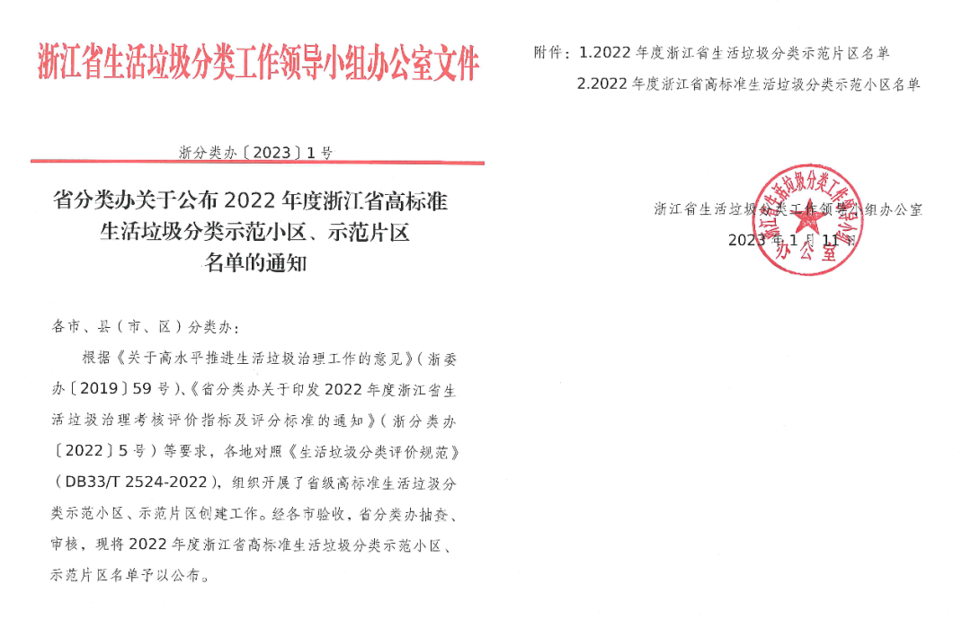 本周,浙江省政府正式公布《2022年浙江省高標準生活垃圾示范小區(qū)》名單,9001cc金沙以诚为本服務(wù)在管的杭州泊林春天、9001cc金沙以诚为本早安;湖州時代公館、錦繡豪園、一里洋房,溫州鹿城大院、觀瀾苑、湖畔雅苑、德馨園尚苑、9001cc金沙以诚为本大悅灣、御宸名邸、樂清府、江山一品;金華麗州一品、衢州9001cc金沙以诚为本君宸等15個項目榮耀上榜。